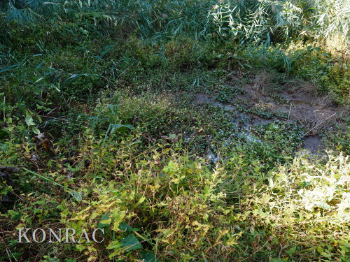 下の田圃は水面が見えない状態になっていました。 土嚢堰を改修して、水面を広げておきたいと思います。