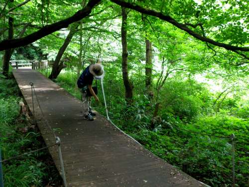 5/18(木) 木道沿いのヨシ、ノイバラ刈り、草地のカナムグラ刈り、セリバヒエンソウ駆除