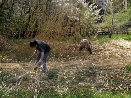 4/4(火) 湿地のヤマグワ、アズマネザサ、オギなどの刈り取り