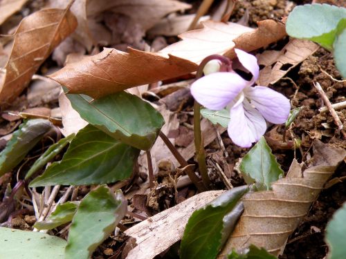 ピクニック広場下のナガバノスミレサイシンの花が増えていました。オカスミレも観察しました。