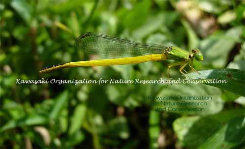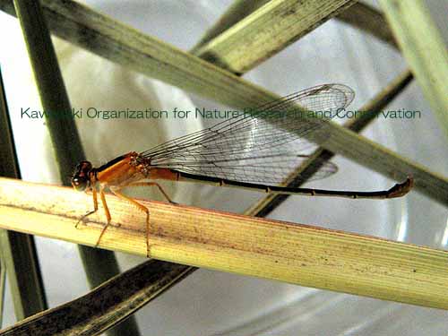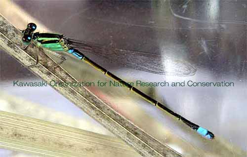アオモンイトトンボ キイトトンボ アオモンイトトンボ Ischnura senegalensis イトトンボ科 2005年以降、かわさき自然調査団では里山の自然学校のプログラムの一つとしてヤゴの救出作戦を行っている。 場所は川崎市多摩区の稲田公園児童プールである。 ここで救出したイトトンボは、2005年 59、2006年 39、2007〜2009年 0、2010年 1、2011年 4(個体)であった。 2005〜2006年の全個体を調べてはいないが、調べた個体は全てアオモンイトトンボであった。 しかし、2011年のヤゴの救出時、プールサイドにはアジアイトトンボ成虫が複数見られた。 アジアイトトンボの羽化の方が少し早かったと想像している。 2011年の4個体は自宅で羽化させ、アオモンイトトンボ♂ 3、同♀ 1であった。