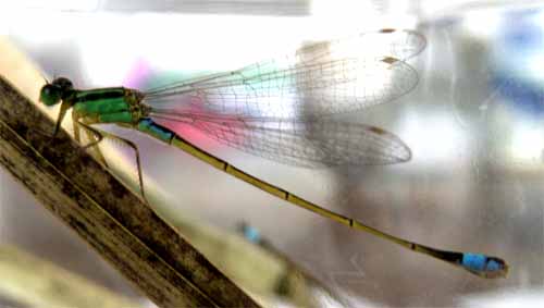 アオモンイトトンボ異色型♀ 2011/6/5 稲田公園児童プールからヤゴ採集、2011/6/12羽化、撮影)岩田臣生