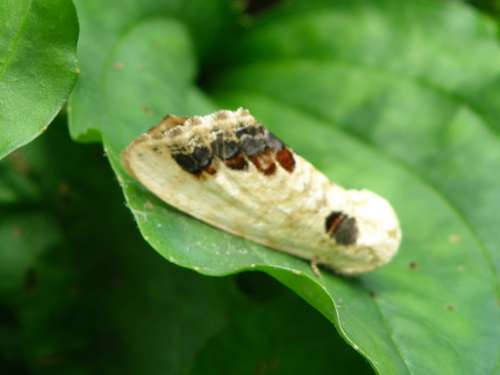 シャチホコガ ツマキシャチホコ モンクロシャチホコ オオアオシャチホコ シャチホコガ チョウ目(鱗翅目) シャチホコガ科 Stauropus(Germar, 1812)属 Stauropus fagi persimilis Butler,1879 国内では北海道,本州,四国,九州,対馬,屋久島に分布. 幼虫はクリ,コナラ,クヌギ,ハンノキ,クルミ,サクラ,ミズキ,ハギ,ヤナギなど種々の広葉樹の葉を食べる。 年2回発生で,幼虫は5〜7月と9月頃見られる.