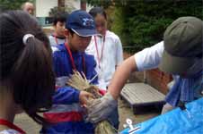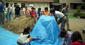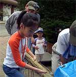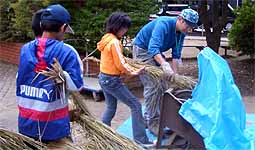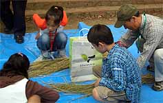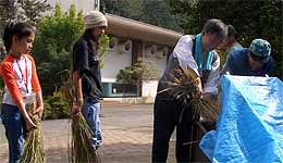 夏帆 「はじめはよかったけど手がチクチク痛くなったよ。」 雄大 「超〜楽しかったよ。もっとやりたかったな〜」 「昔の農家の人は大変だったんだね。」
