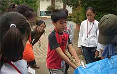 日 時 10月15日(土)10:00〜15:30 場 所 生田緑地 参加者 1班 飼田、鈴木、田村 (担任)中臣 2班 島尻、野路 3班 神山、片山、野路、政本 (担任)岩田 4班 金野、原、日野原 (担任)岩田 かわさき自然調査団からのサポート 尾形、坪井、美馬、山本 青少年科学館からのサポート 辻 参加者 12名、講師スタッフ 8名 9:00 場所を青少年科学館前の広場の一角とし、脱穀機と稲を運んで、準備する。