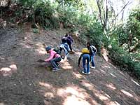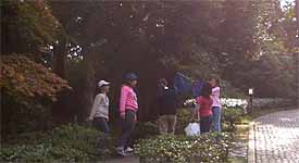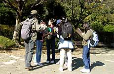 参加者 神山、鈴木、内藤、万願寺、山内、山口 6人 講師 岩田芳美・臣生 午前中は、噴水広場〜奥の池〜つつじ山〜噴水広場と歩きながら、樹木観察をしました。 樹木は、常緑広葉樹(じょうりょくこうようじゅ)、常緑針葉樹(じょうりょくしんようじゅ)、落葉広葉樹(らくようこうようじゅ)、落葉針葉樹(らくようしんようじゅ)の4種類に分かれるということの学習です。 落葉広葉樹は、イチョウ●、ネムノキ▼、ケヤキ●、タマアジサイ、コナラ、ウメ▼、コブシ、ボケ、サクラ▼、ナンキンハゼ●、ハンノキ、ホオノキ、ツツジ◎(狂い咲き)、ヤマグワ●、トウカエデ●など 落葉針葉樹は、ラクウショウ(ヌマスギ)●、メタセコイアなど 常緑広葉樹は、サザンカ◎、マテバシイ、アセビ(馬酔木の意味を知っている子がいました)、ヤマモモ、ヒイラギナンテン、シラカシ、ヒイラギモクセイ、ヤツデ、ツバキ、シュロなど 常緑針葉樹は、ヒマラヤシーダ◎、モミ、スギなどを観察しました。 記号は、●黄葉・紅葉していた木、◎花がさいていた木、▼落葉していた木です。 噴水広場では、丁度巣箱から出てくるシジュウカラを観察しました。 ラクウショウが紅葉していました。