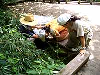 泥だらけの足を水場で洗って、帰ることにしました。途中、竹林に寄って、案山子に使う細めの竹を調達してから青少年科学館に戻りました。