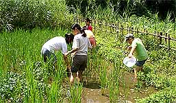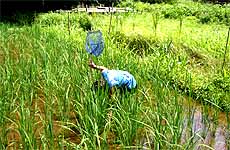 午後は田圃の中の草取りやアメリカザリガニの駆除を行いました。 オオシオカラトンボがバッタを捕食しているところを捕まえた子どもがいました。オオシオカラトンボに混じって、ウスバキトンボも縄張り争いに参加しています。 イネは何本かは穂を出しましたが、余りに疎らな状態で不安です。
