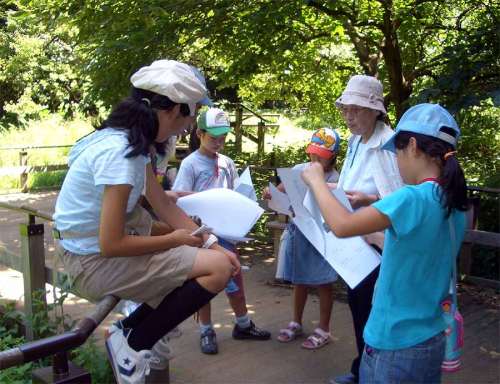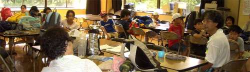 青少年科学館に戻って、今日の活動を振り返りました。 藤間先生と一緒に花を咲かせている植物を調査していたチームから観察報告をしてもらいました。 ヤブミョウガ、クサイ(イグサの仲間)、ジュズダマ、ミズヒキ、セリ、カントウヨメナ、チダケサシ、ミソハギ、アゼナ、ホオズキなどが報告されました。 田圃や湿地の水域を調べていた子どもたちはアメリカザリガニが目当てでしたが、なかなか見つけ出すのが難しかったようです。合計で15匹でした。 チョウを調べていた山本先生からは、13:00〜14:15に、スジグロシロチョウ、キチョウ、ナミアゲハ、キアゲハ、クロアゲハ、カラスアゲハ、 ナガサキアゲハ、キタテハ、ゴマダラチョウ、アカボシゴマダラ、ヤマトシジミ、ウラギンシジミ、ムラサキシジミ、クロヒカゲ、ヒメウラナミジャノメ、 コミスジ、イチモンジチョウの観察が報告されました。