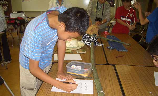 場所 青少年科学館、生田緑地 参加者 神山幸雅、福江祥充、須田大貴、豊島芳璃人、内藤義人 荒井優里花、川村美涼、大島万奈 OB参加 宮部耕佑 9人 講師 神山歩未、藤間熙子、中臣謙太郎、山本晃、岩田芳美、岩田臣生 今日は、午前中は案山子をつくって田圃に立てること、午後は生物調査をすること、 案山子の案が集まらなかったので基本的なところは決めて、材料を用意させてもらったこと などを説明して活動を始めました。