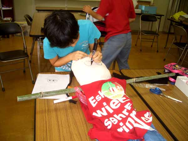 案山子の顔は全員が案をつくり、その中からチームで話し合って決めていきます。