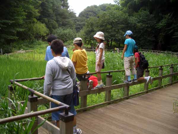 暑さを避けて青少年科学館でお弁当を食べました。 また午後は奥の池の生物調査(外来生物駆除作戦)と自然観察の2チームに分かれることにしましたが、 結果的には、男子チームが生物調査、女子チームが植物観察をすることになりました。