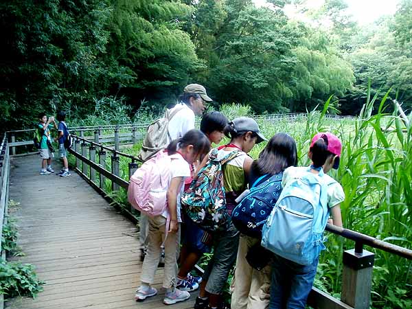 今日は、ニイニイゼミやヒグラシの大合唱の中を歩いてきましたが、姿を見ていない子どもたちは写真で成虫の特徴を確認しました。