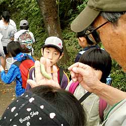 調査終了後、自然観察をすることにしました。 辺りにはツリフネソウとミゾソバが花盛りです。 でも、子どもたちはツリフネソウの花より実の方に関心が高くて、まだ熟していない実を潰している子どももいました。