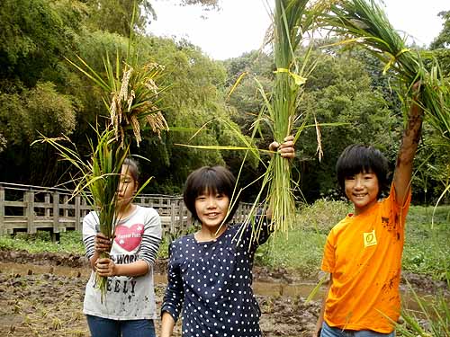 感想 ・初めての稲刈りだったので楽しかった。 ・楽しかった。 ・足が汚れた。 ・稲刈りは久し振りで楽しかった。早く、おにぎりを食べたい。 ・今日初めてバッタの脱皮を見つけられたので楽しかった。(ツチイナゴの脱殻でした。) ・初めての稲刈りだったけど上手くできた。 ・稲刈りは楽しかった。 ・稲刈りは恐かったけど楽しかった。 ・今年は量が多かった。田圃の水が抜けていなかったので嫌だった。 ・今年初めて稲刈りをしたけど楽しかった。 ・去年より稲が多くて楽しかった。 ・稲刈りが沢山できて良かった。普段見られない珍しい植物を見れたので良かった。 ・去年も稲刈りをしたはずなのに稲刈りの記憶が無かったけど、今年は楽しかった。 いろいろな植物の名前を覚えられて良かった。 ・稲刈りは初めてだったけど楽しかった。 ・稲刈りは初めてだったので、最初はぎこちなくて、やりにくかったけど、馴れてきて沢山とれたので良かった。 ・稲刈りは初めてだったので楽しかった。 稲穂を数えるのがとても大変でした。 ・初めて稲刈りができると思っていたが、捻挫してしまったのでできなかった。 ・お米の数を数えるのが面倒くさかった。 ・一粒一粒数えるのは大変だったけど、前よりは速くできて良かった。 ・泥に足を取られてズボンが濡れてしまったのでショックだった。 稲穂調査の結果 A班 稲穂 9本/株、籾 1,089粒/株 B班 稲穂10本/株、籾 627粒/株 C班 稲穂11本/株、籾 1,011粒/株 D班 稲穂12本/株、籾 879粒/株 平均 10本/株、 901粒/株 |