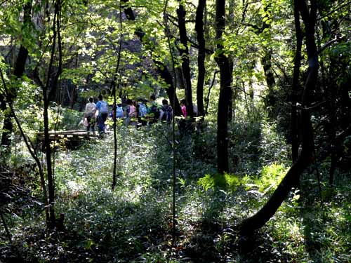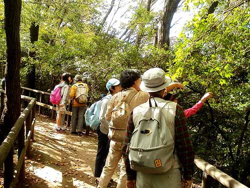 秋の山路には色々なものが落ちています。 木々には実もついています。 様々なものを見つけて、学習しました。
