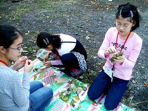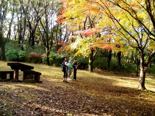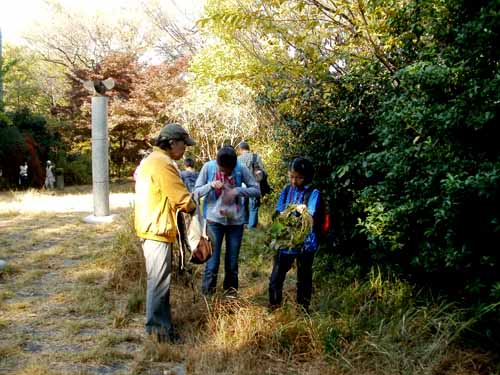 場 所 生田緑地(川崎市多摩区) 参加者 A 鈴木萌恵、山内雄仁、酒見果歩、谷実鈴、永喜康雅、内藤真衣 B 原田大雅、大江田慧、上野美紀、丹羽小蒔 C 内藤義人、江口暁香、島津千咲、山本来幸 C 井原沙羅、棟安恵万、高田泰成 17名 講 師 岩田臣生、岩田芳美、梅原和仁、神山歩未、鈴木志歩、藤間煕子、山本 晃 7名 里山の自然学校第10回は“秋の里山”ですが、稲ワラや里山の植生管理で得られた材料を使った“つくってみよう”も再開することにしました。 今年の紅葉はまだまだという感じですが、芝生広場の紅葉には子どもたちも感心したようです。 草刈り途中の城山下谷戸では残してあったノササゲなどのツル取りをしてもらって、そのツルをリースづくりの材料にしてもらいました。