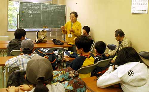 公園管理事務所2階に戻りました。 今日の活動中に気がついたのは、ルーペを使えない子どもがいたことでした。 そこで、ルーペの使い方を、また、雨が降った時のために持ってきたファーブル(携帯型実態顕微鏡)の使い方も教えることにしました。 でも、子どもたちは顕微鏡は学校で使っているようでした。