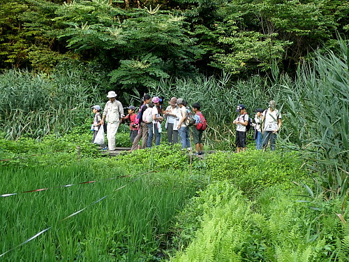 場所 生田緑地 参加者 豊島芳璃人、原田大雅、山内雄仁、林 航大、山崎慎悟、甲斐亮汰、山根将聖、吉澤俊明、 春田健登、駒松汰生 大江田慧、江口暁香、棟安恵万、谷 実鈴、山本来幸、山根早也香 16人 OB参加 神山幸雅(高校1年) 講師 岩田臣生、岩田芳美、神山歩未(高校3年)、鈴木志歩(同左)、藤間煕子、山本 晃 今年の「夜の昆虫観察」もライトトラップを行いません。 枡形山に車の乗り入れができないためです。 勿論、他の場所でやればいいのですが、電源などについての協議を行いませんでした。 来年は別の場所で、こじんまりと行うことを検討したいと思います。 16時に、公園事務所の裏に集合して、川崎のセミについての話をしてからフィールドに出発しました。