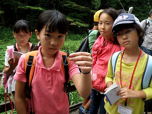 草地にはバッタやキリギリスの仲間の幼虫がいました。ヒシバッタもいました。 ササキリの幼虫は、子どもたちにも、不思議な虫に見えたようです。