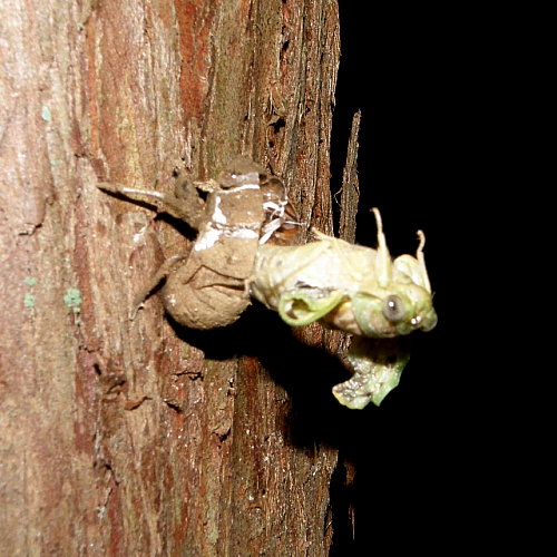 ニイニイゼミの羽化ポイントに移動しました。 あちこちで羽化が始まっていました。