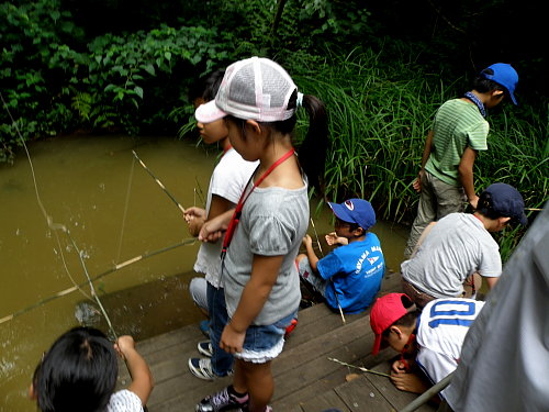 そうなると、釣り上げることができるかどうか不安でしたが、一つの自然遊びとして体験してもらうことにしました。