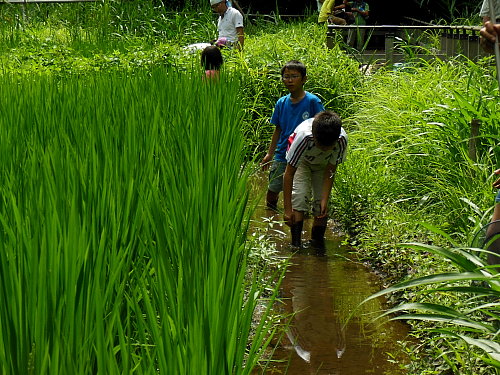 初めの頃の里山の自然学校では、この狭い池に皆で入って、手網で掬って、駆除をしていました。 しかし、慣れた子どもたちがアメリカザリガニをもてあそぶようになってしまったことから、駆除活動に参加させることを控えていました。
