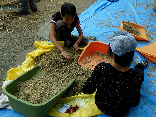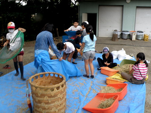 脱穀した籾から藁クズなどを取り除く活動を始めました。
