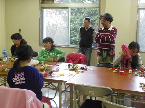 午後の部は午前中につくったリースなどの仕上げです。藤間先生が指導します。
