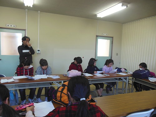 市民活動室に戻りました。 室内学習です。用紙を2枚渡し、1枚には今日観察した葉痕を記録し、もう1枚には1年間の感想、気づいたこと、里山の自然学校への提案などを書いてもらいました。