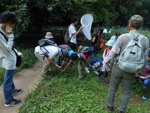 場所 生田緑地整備事務所2階〜谷戸〜整備事務所裏〜中央広場 参加者 石井恵梨香、山下真奈実 大橋拓真、工藤千穂、軸丸陽希、富田勇樹、村上柚葉、矢野 悠 OB 工藤思由、原田大雅 10人 講師 藤間煕子、山本 晃、梅原和仁、岩田芳美、岩田臣生 サポート 神山幸雅 6人 第5回里山の自然学校は、夜の昆虫観察です。