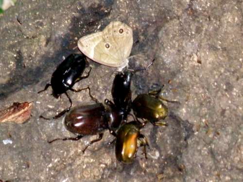 その他、数種の蛾、トウキョウヒメハンミョウ、ナミテントウ、ハネカクシ類、クサギカメムシ、チャバネアオカメムシなどが集まりました。 セミは、ヒグラシ幼虫がノコノコと歩いて来たほか、終わり頃、アブラゼミが飛んできました。