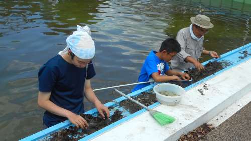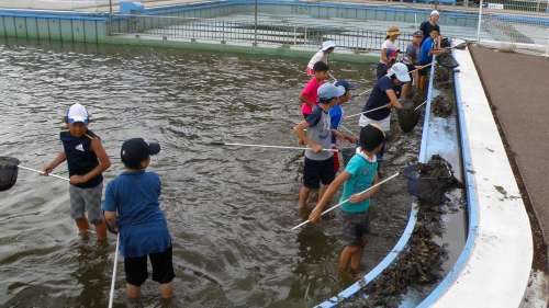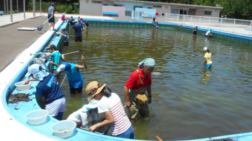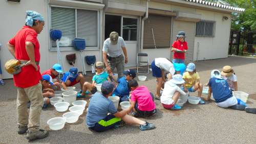昼から参加した子と梅原、神山の両先生は、ヤゴの救出数を増やそうと、採集活動を続けていました。