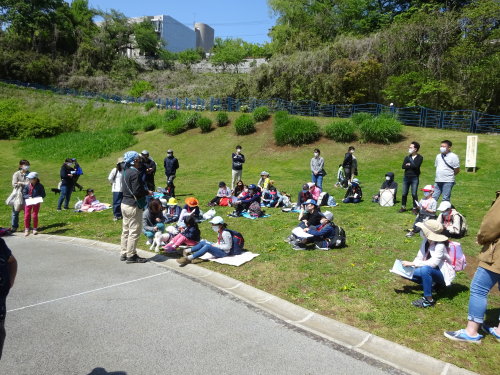 場所 生田緑地 市民活動室、生田緑地 参加(里山の自然学校 3年生)佐藤天音、軸丸朝咲、原田天雅 (里山の自然学校 2年生)佐藤弥里、加藤帆乃果、橋口怜奈、房安弘太郎、玉木 遥、池上豪一郎 (里山の自然学校 1年生)谷口連太郎、森弥太郎、青木いろは、柴田一花 村尾春樹、久保田あかり、柴田綾乃、須貝愛桜、舟越 葵、宮本琴羽、吉田 絃 20名 講師(事務局) 岩田臣生、岩田芳美 サポーター 工藤思由、小野寺花柑 合計 24 名 里山の自然学校は 2005年 5月に開校したので、今年度は第 17 期となります。 広域の天気予報は、土日は雨でしたが、多摩区の予報が当たって、晴となりました。 今期の参加者募集については、10人程度の先着順としたのですが、募集開始日に 20人を超える申込があり、慌てて、募集を締め切りました。 それでも、参加者 21人、第 1回は欠席があり、20名で開催しました。 講師は事務局の 2人のみとなりましたが、卒業生にサポートしてもらうことにしたところ、この日は 2人のサポーターに手伝ってもらえることになりました。 活動に市民活動室を使わせていただけるようになっていますが、第 1回は保護者の参加があるため、密になることを避けて、西口園路広場で集合することにしました。 ここは、一般の来園者と分けることはできませんが、参加手続きとオリエンテーションだけを行いました。