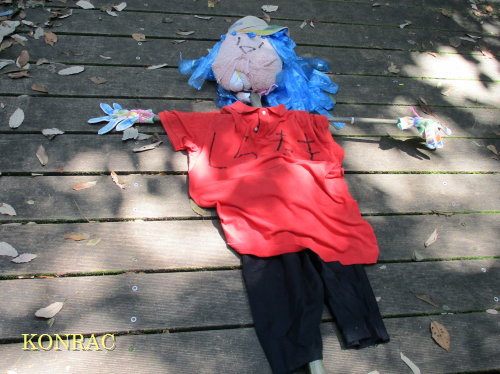 案山子づくり 案山子づくりは、班長さんに任せて、案山子のイメージを話し合い、作業を分担して、つくりました。 案山子の骨格(頭、腕の取り付けなど)づくりまでは、事務局が行いました。