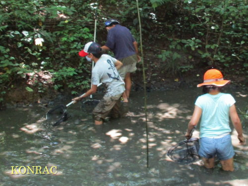 生物調査A班 生物調査を希望した男子全員( 3名)を集めて、班長にもしたのですが、今年の男子は元気がありません。 一人だけの女子が、引っ張っていました。