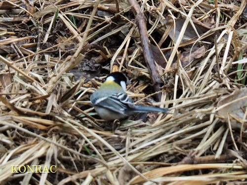 シジュウカラの群は、下の田圃附近では、私たちを先導するように、草や樹の枝に止まりながら、やはり草の種子などを食べているようでした。
