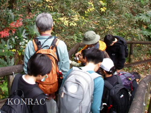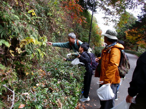東口の日本民家園前に出てから、崖地の植物を観察しました。