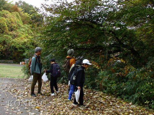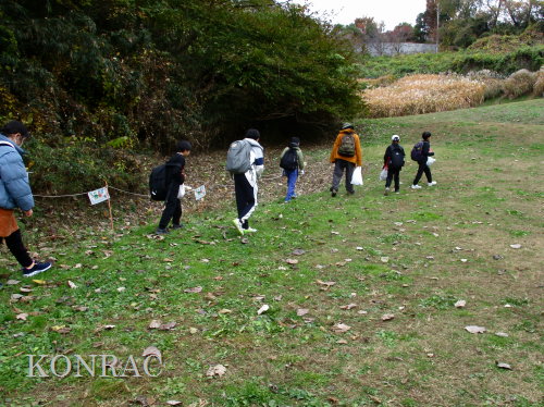 日時 2025年 11月 23日(日) 10:00〜15:00 曇 場所 集合 市民活動室 活動 活動図 参加(里山の自然学校 2年生)関山敢太、峰和菜子 2名 (里山の自然学校 1年生)數納太一、前場理宏、三重野寛、村田乙峰、山室幹太 5名 卒業生サポーター 安達湊都 講師サポーター 伊澤高行、廣瀬朗子 講師・事務局 岩田臣生 合計 11 名 第10回里山の自然学校<秋の里山>は、秋の生田緑地の自然を観察して歩いて、落葉や木の実など、里山の宝物を拾ってきて、リースなどをつくることにしました。 市民活動室に集合して、直ぐに外に出ました。
