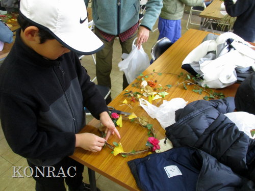 全員のリースづくりが終わったので、各自の作品を持って、集合写真を撮りました。