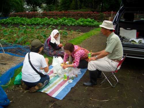 団員の山本さんの実家で育てていた苗が余っていて、分けてくれるというので、受け取りに行った。