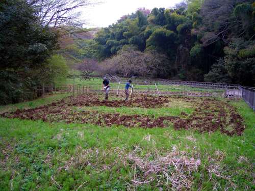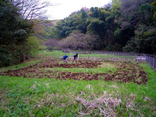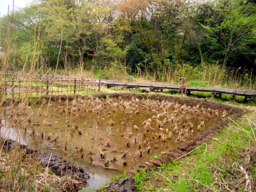 3枚目の谷戸の田圃c の再生 日時 平成16年(2006) 4月13日(木)13:30〜16:00 参加者 佐山美智子、森卓子、岩田臣生 今春、田圃ボランティアとして3人が活動に加わりました。今日は女性が2人ですが、新しい田圃が着々と耕されていきます。 上の田圃から水を引いて、外周にいきわたったところで作業を終わりにしました。 さて、水はどんな抜け方をするでしょうか。
