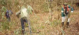 岩田芳美はアオキを引き抜いて、樹齢と本数を調べた。 1〜2年 36本、 3年 57本、 切株からの萌芽 56本、 合計 149本