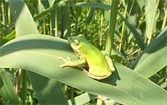まず、一番下の田圃に張り、次に一番植えの田圃に張って、やれやれと一息ついていると、カルガモがやってきて草陰に消えました。まさかと思って様子を見に行くと、田圃に入っていました。何のことはない、ネットの下をかいくぐって侵入していたのです。