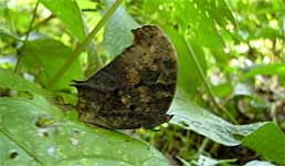 私は、斜面側から水流の上に覆い被さっているアオキ、アズマネザサなどを伐除し、田圃側のイノコヅチ、ミズヒキなどを刈り払って、 水流の上空空間を確保する作業を行いました。勿論、日陰の場所です。 流れには先日の台風時の雨の影響と思われる土砂の堆積や岸の崩れた箇所などがありましたが、これは少し様子をみることにしました。