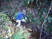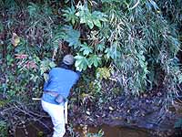 午前中はホタルの里の水辺のアオキ、ヤツデ、シュロなどを伐除する作業を行い、梅園のテーブルでお弁当を食べました。