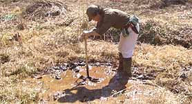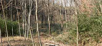 2段目の途中で消えてきた流れを3段目まで伸ばしました。いくつかの穴から水が漏れていたのを、ひたすら長靴で踏み固めることの繰り返しです。 水路以外の部分は、2004年11月〜2005年3月の時に比べると全く状況が一変し、確実に湿地化が進んでいるのがわかります。