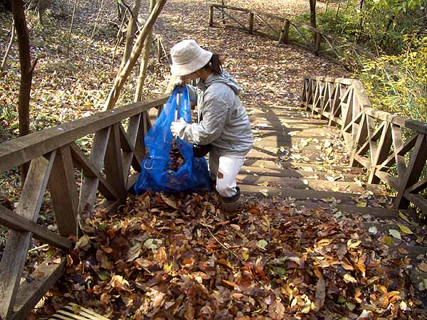 日時 2008/12/11(木) 10:00〜13:00 晴 場所 生田緑地ハンノキ林 参加者 佐藤利奈、城本法子、岩田芳美、岩田臣生 10:00〜11:00 園路に落ちている枯葉を集めて田圃に運びました。