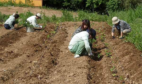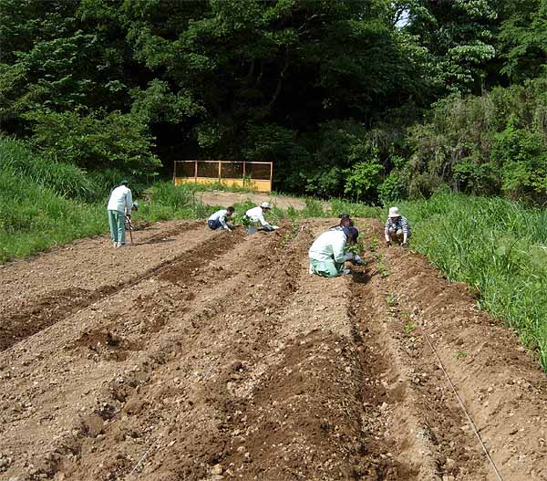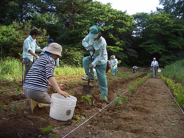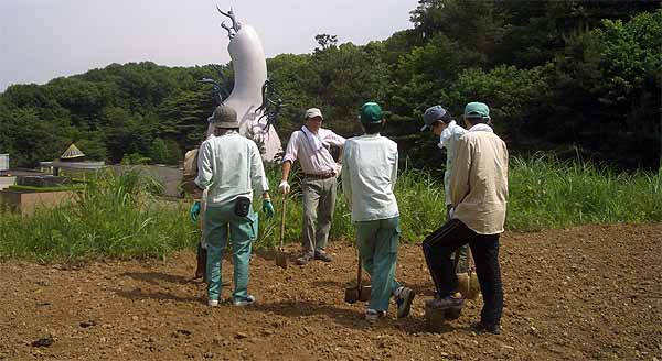 午後は堀り取った苗木を仮植え場所に植えていくことになりましたが、 すべての苗木を堀り取ったしまったこの時点になって井戸のポンプが故障していることが分かりました。 移植しても活着してくれるかどうか不安がつのりますが仕方ありません。 ともかく、植えていきました。