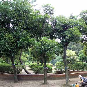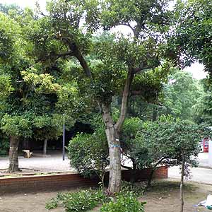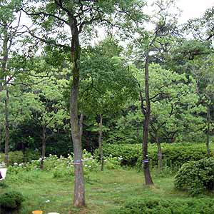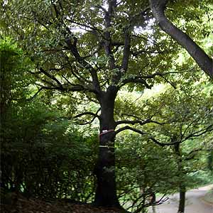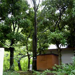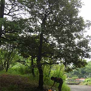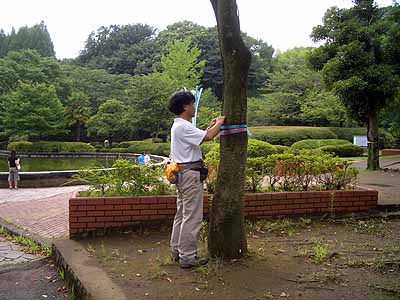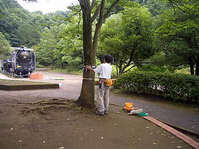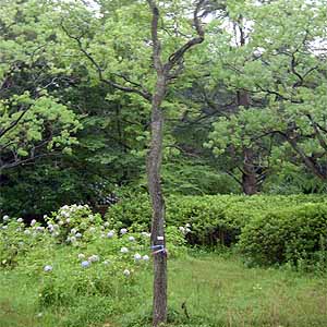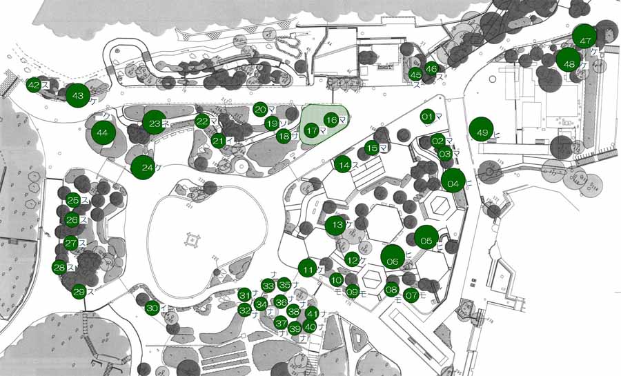 事務局では、この印が2つ以上ついているものに、更めて、番号と樹種名を表記した札を付け、現況樹木図上に印を付けた樹木を明示しました。